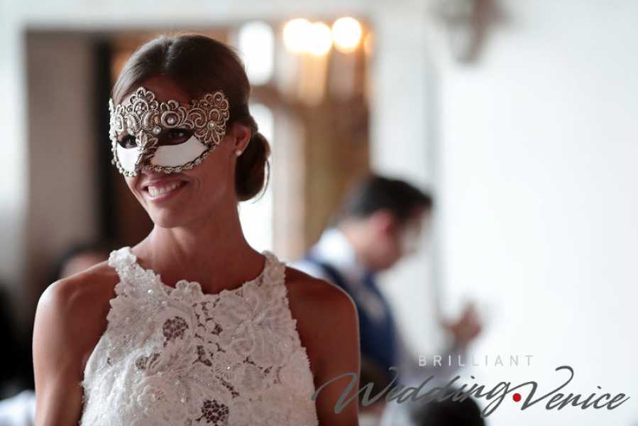 Während des Empfangs trug Giulia eine davon, und es scheint, dass die Maske für sie gemacht wurde, da sie perfekt zu ihrem feinen Hochzeitskleid passte.