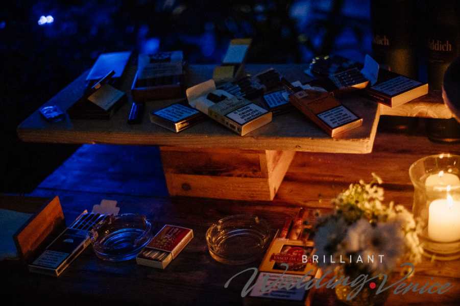 Der Hochzeitsempfang endete mit einer wunderbaren Hochzeitstorte, einem Millefoglie. Dann servierten wir auch einige Mono-Portionen Tiramisù, Nuts & Meringue Parfait, Pannacotta mit Beeren und Schokoladenmousse.