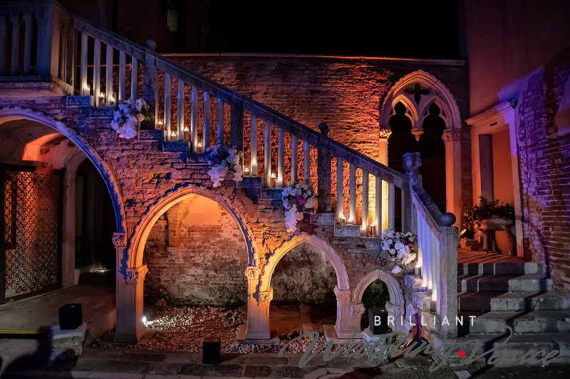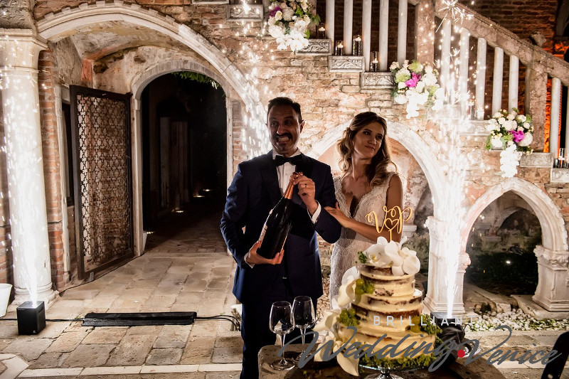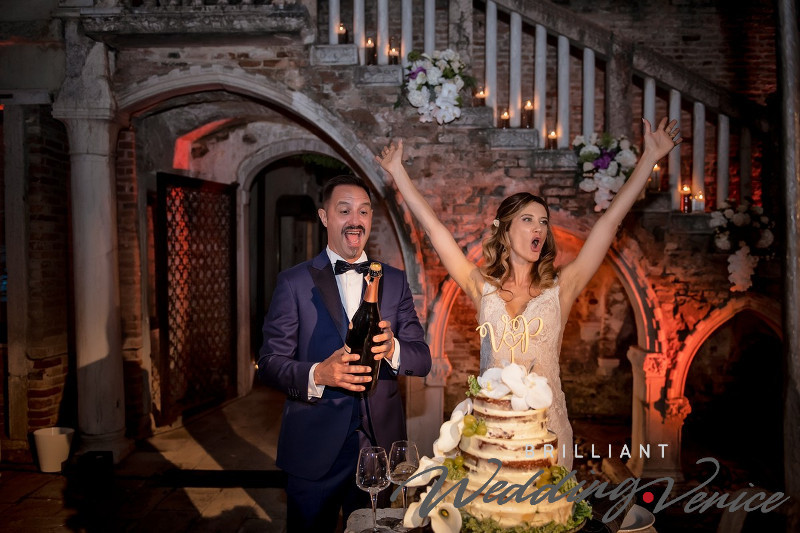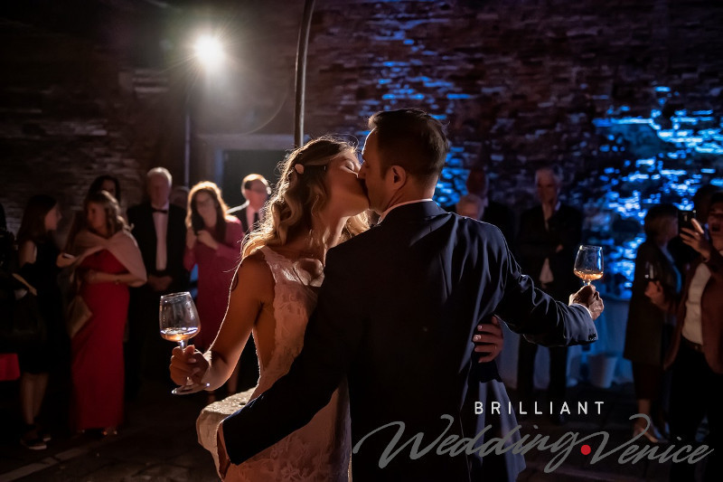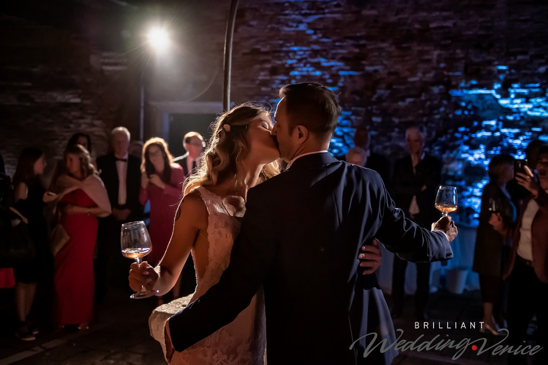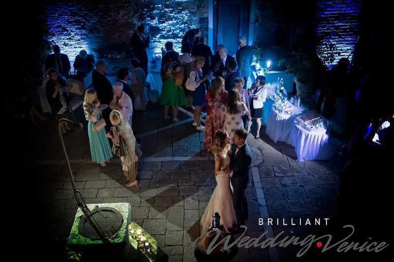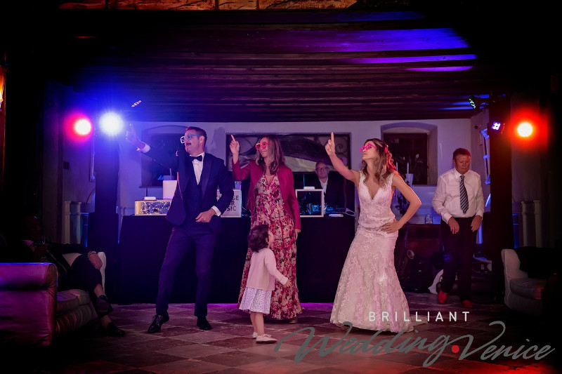 Der historische venezianische Palast wurde zu einer modernen Diskothek, Veronica und Piergiorgio begannen den Tanz und dann schlossen sich alle Gäste ihnen unter den Noten von Bee Gees „Sie sollten tanzen“ an.