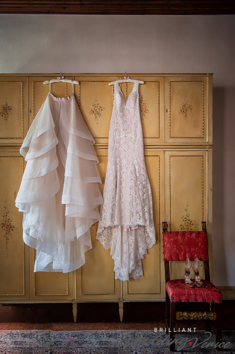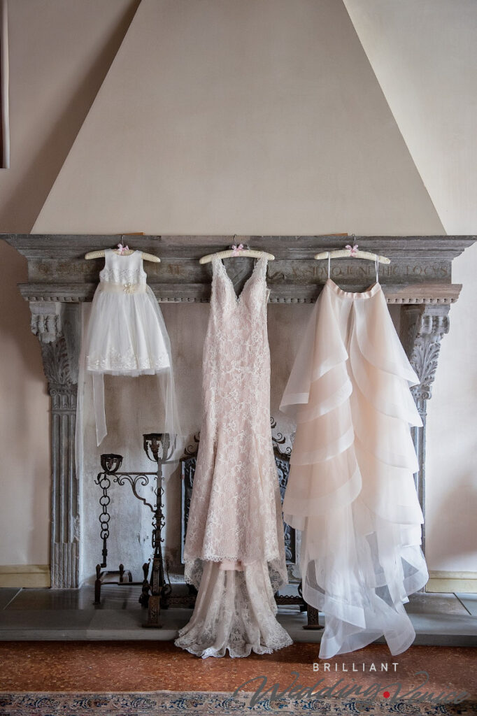 Veronica machte sich in einem Raum im venezianischen Palast fertig, in dem sowohl ihr Kleid als auch das ihrer Tochter an einem alten Kamin aufgehängt waren.