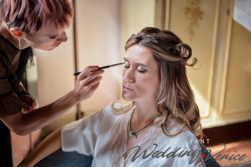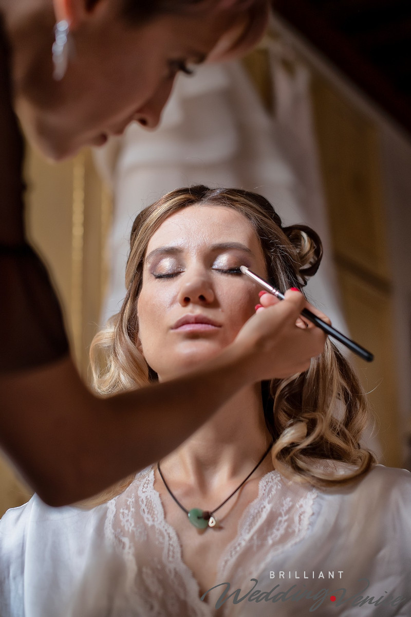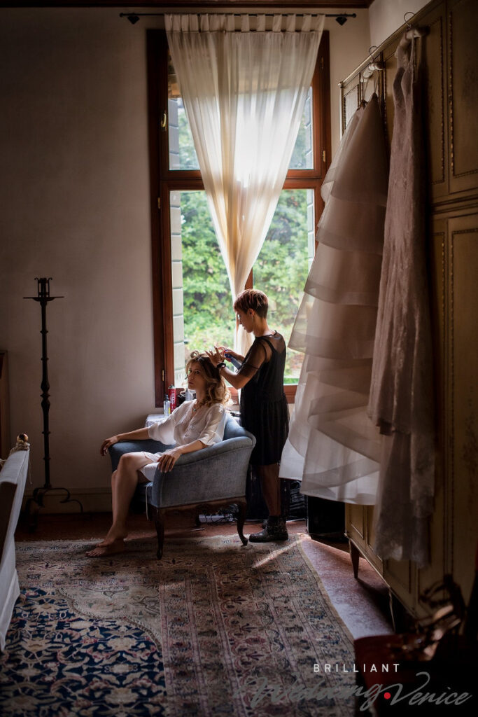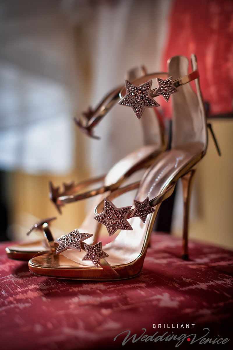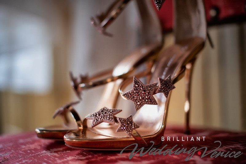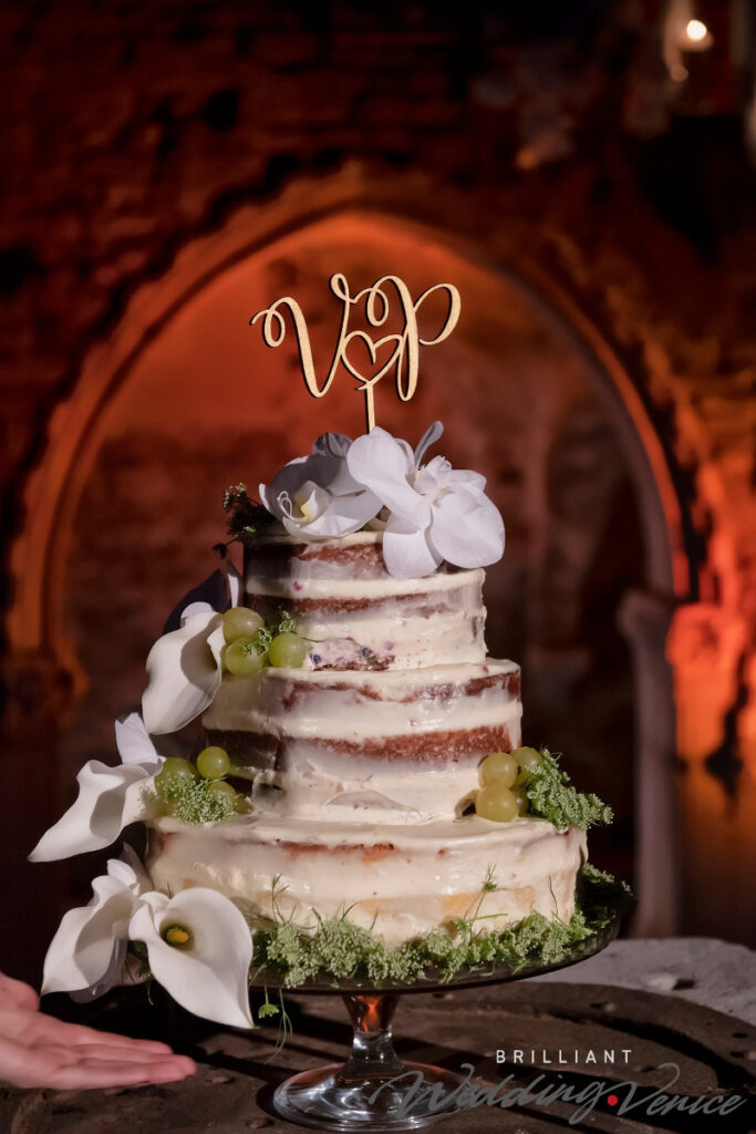 Nachdem der reichhaltige Aperitif vorbei war, zogen alle Gäste in den ersten Stock des venezianischen Palastes, um den Rest des Tages zu genießen, während das Brautpaar ein Fotoshooting in Venedig machte.