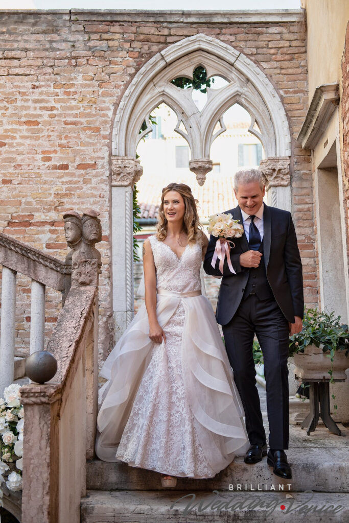 Dann war Veronica an der Reihe. Sie wirkte wie ein Engel oben auf der Treppe und holte den Arm ihres Vaters unter den Noten von “Stay with me” von Sam Smith mit Mary J. Blige, gesungen von Lara Canta.
