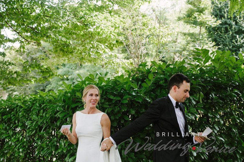 Tatsächlich beschlossen sie, sich vor der Zeremonie dort zu treffen, weil sie ihre Eheversprechen austauschen wollten. Rücken an Rücken, ihre Hände haltend, lasen sie die Worte, die der andere über ihre tiefe Liebe schrieb. Es war ein unglaublich bewegender Moment für sie und auch für unseren Fotografen!